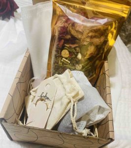 Dans votre box Renouveau, vous avez reçu un sachet d’herbes centré autour du féminin sacré. Déposez le mélange dans le sachet en tissus et laissez infuser. Vous pouvez-y ajouter du gros sel de l’Himalaya.